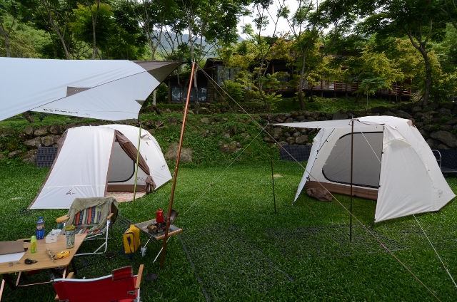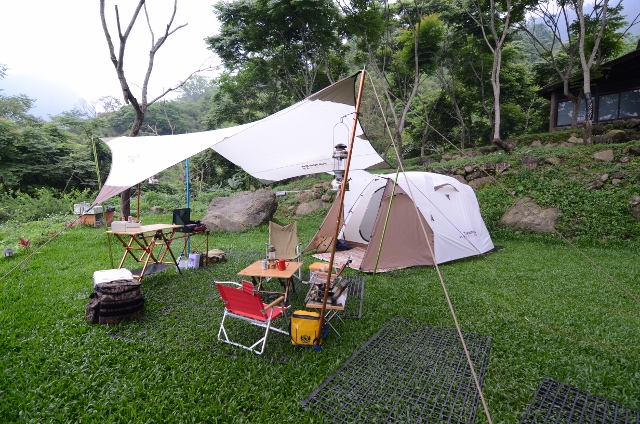 戶外的客廳空間,大部分喝茶喝酒、聊天吃飯都是在此空間中行動,"天幕"較為輕便需另外準備營柱、營繩,"客廳帳"較為笨重,但卻也比天幕穩固,也是各有優缺點。
