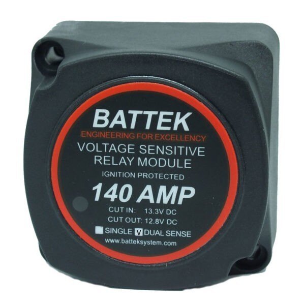 如果你要每組電瓶在充放電時都獨立,有一個引擎,兩組或三組電瓶,你可以用它來自動分配充電。每組電瓶不會看到對方,最大電流的限制是依發電機的大小。沒有一組電瓶可以分享電壓給其它的電瓶組,這可以避免大電流的流動造成保險絲的燒毀。