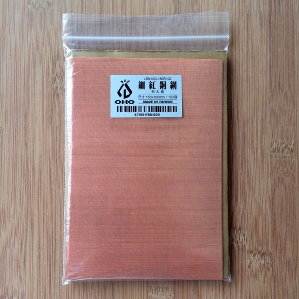 細紅銅網150x100mm 100目 4枚裝LBN100L150R100 整理汽化燈,汽化爐必備品 台灣製 上油管裏用銅網取代Coleman紙管可以增加油的流量 適量的銅網可以穩定油與空氣的流速,使燃燒更完全,供油更順暢。 可裁剪成不同尺寸運用在各式氣化燈爐 尺寸:約150 x 100mm 100目 (4枚裝) 產地:台灣