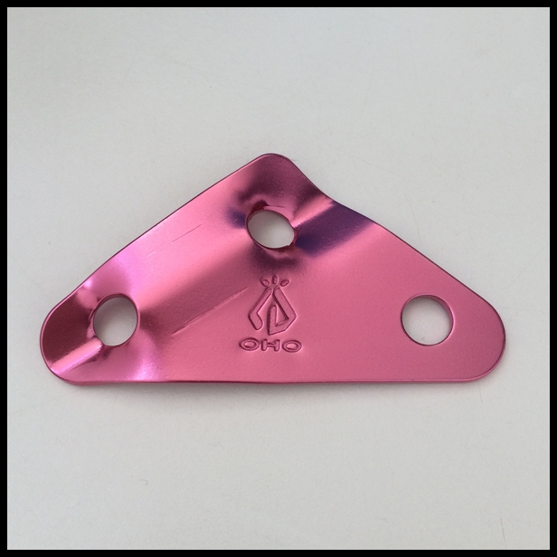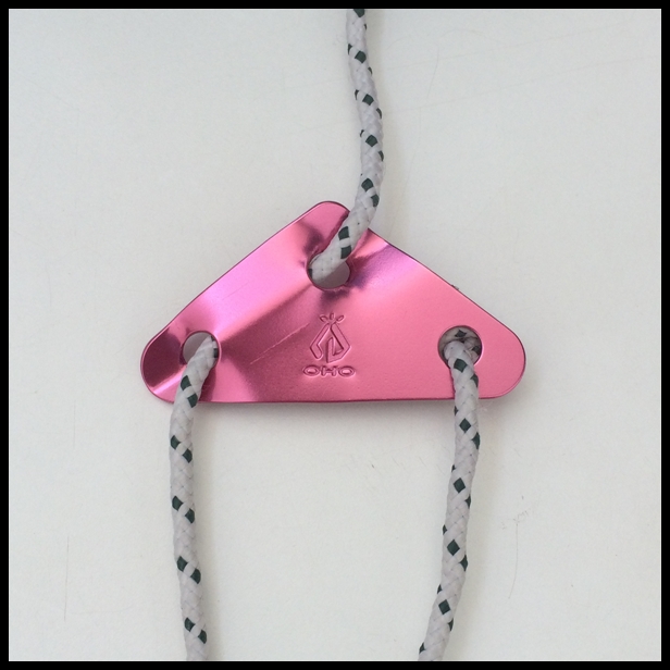 鋁合金三角調節片 粉紅 AA2PK 天幕、炊事帳營繩使用 8mm以下的營繩皆可使用 鋁合金一體成形的營繩三角調節片 孔徑:8mm (8mm以下的營繩皆可使用) 帳蓬、天幕、炊事帳營繩使用 台灣製造 顏色:粉紅 尺寸:(約)厚度2mm 材質:鋁合金