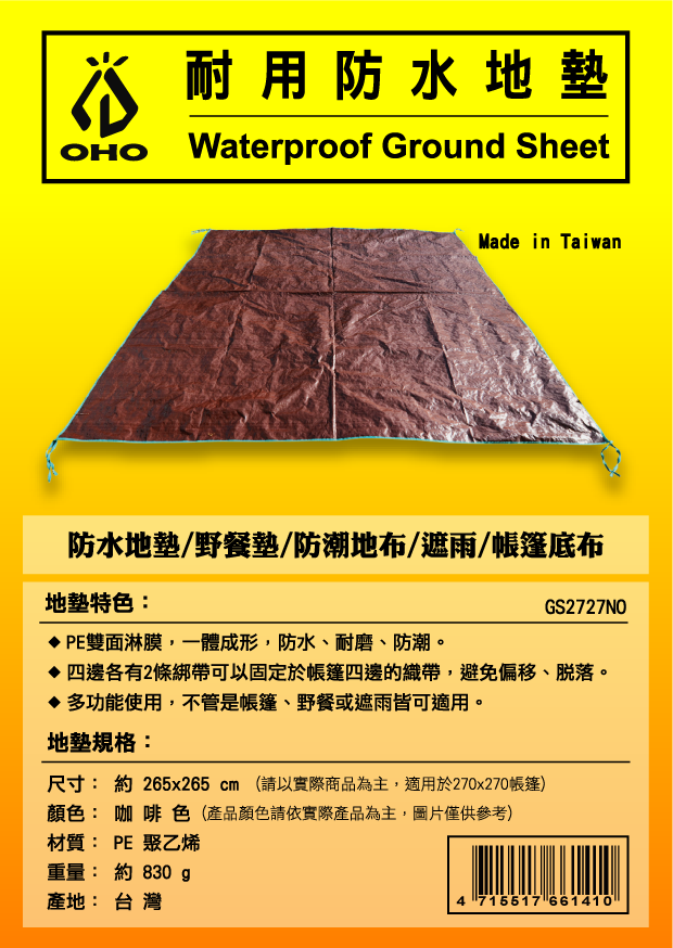 四邊各有綁帶可固定於帳篷四邊,避免偏移、脫落