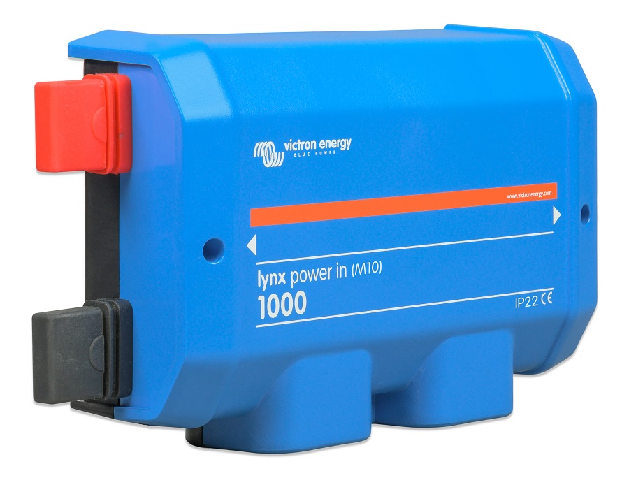 - Lynx Power In 內含正極與負極匯流排,具備 4 個連接點,可用於電池、負載或充電器,並提供接地連接。它是 Lynx 配電系統的一部分,並提供 M8 或 M10 匯流排兩種版本。請注意,M10 指的是模組之間的匯流排連接接點,而保險絲與電纜連接則一律為 M8。
