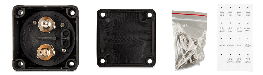 - 旋鈕可拆卸,以利隔離或安全用途。Battery Switch符合ISO8846點火防護標準,適合在引擎艙內使用。