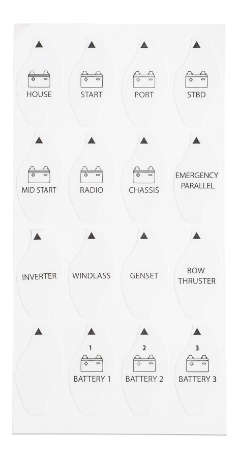 - 出廠時附有 16 張不同的標籤貼紙,可依需求自訂電瓶開關的用途。