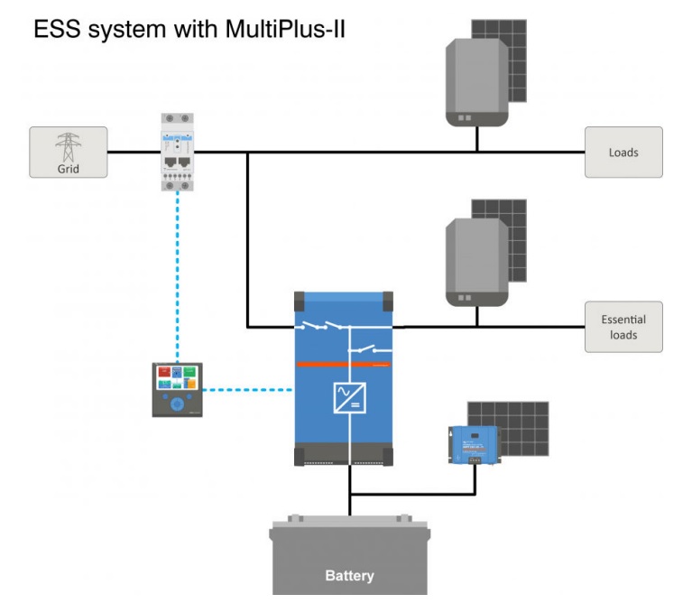 - 具備ESS(能源儲存系統)功能的MultiPlus: MultiPlus-II是一款多功能逆變充電器,擁有MultiPlus的所有特性,並額外提供外部電流感測選項,使PowerControl和PowerAssist功能擴展至100A。